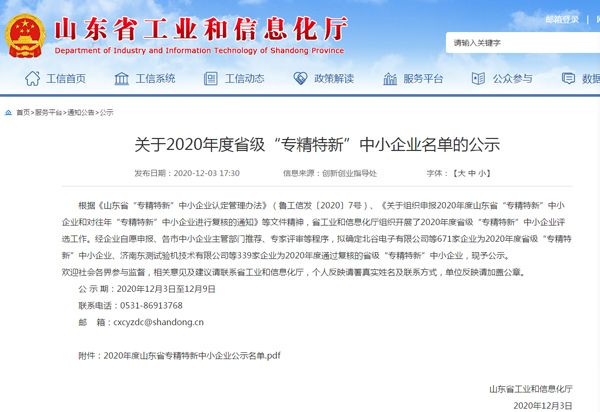 根據(jù)《山東省“專精特新”中小企業(yè)認(rèn)定管理辦法》(魯工信發(fā)〔2020〕7號(hào))、《關(guān)于組織申報(bào)2020年度山東省“專精特新”中小企業(yè)和對(duì)往年“專精特新”中小企業(yè)進(jìn)行復(fù)核的通知》等文件精神,省工業(yè)和信息化廳組織開展了2020年度省級(jí)“專精特新”中小企業(yè)評(píng)選工作。經(jīng)主管部門推薦、專家評(píng)審等程序,確定我公司為2020年度省級(jí)“專精特新”中小企業(yè)。
